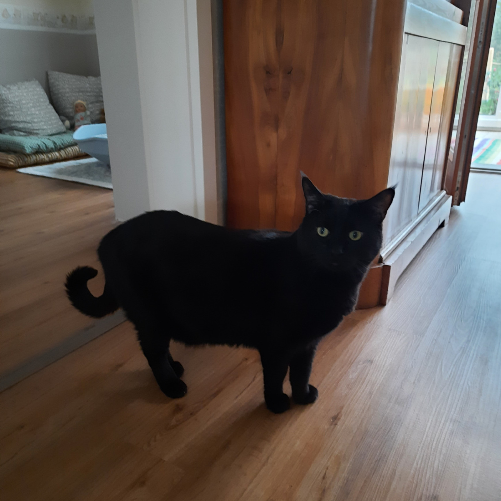 Wir leben in einem Reihenendhaus mit direktem Zugang zu unserem Garten. Wir, das sind außer meinem Mann und mir, auch unsere erwachsenen Söhne, die zwar schon eine eigene Wohnung haben, aber an den Wochenenden und in den Ferien gerne bei uns sind. Zur Familie gehört außerdem unser schwarzer Kater Bagira. Er ist ein reiner Hauskater und liebt es, das Spiel der Kinder aus sicherer Entfernung zu beobachten.